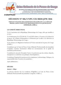 La commission de la carte professionnelle de l’Union nationale de la presse du Congo -UNPC- a dénoncé mardi 10 mars 2026 l’autoritarisme dans le chef du Bureau exécutif.